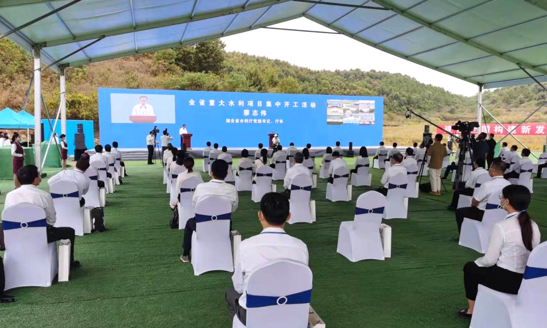 9月21日,湖北省重大水利项目集中开工活动在孝感市孝昌县小河镇响堂村鄂北地区水资源配置二期工程现场举行。