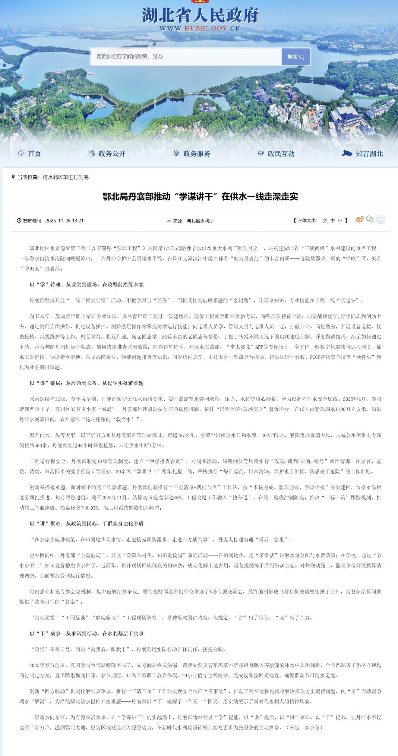 一泓碧水向东流,为有源头活水来。在“学谋讲干”的实战场上,丹襄部将继续以“学”提能、以“谋”提质、以“讲”聚心、以“干”提效,让丹江水不仅送至千家万户,滋润鄂北大地,更为区域发展注入源源动力,在新时代水利攻坚征程上续写更多为民服务的生动篇章。(王忠 李小琼)