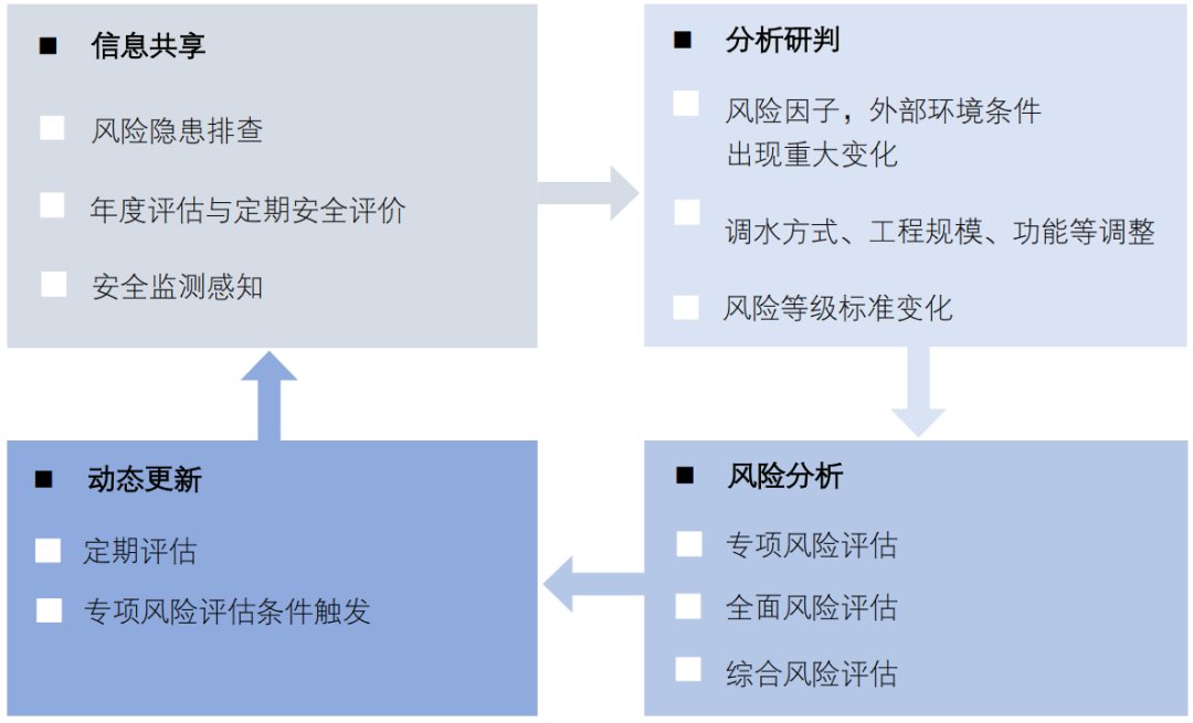 为有效应对调水工程运行期复杂风险,需要构建系统化、流程化的风险评估技术体系,核心是形成风险“识别—评价—管控—更新”的动态闭环管理。