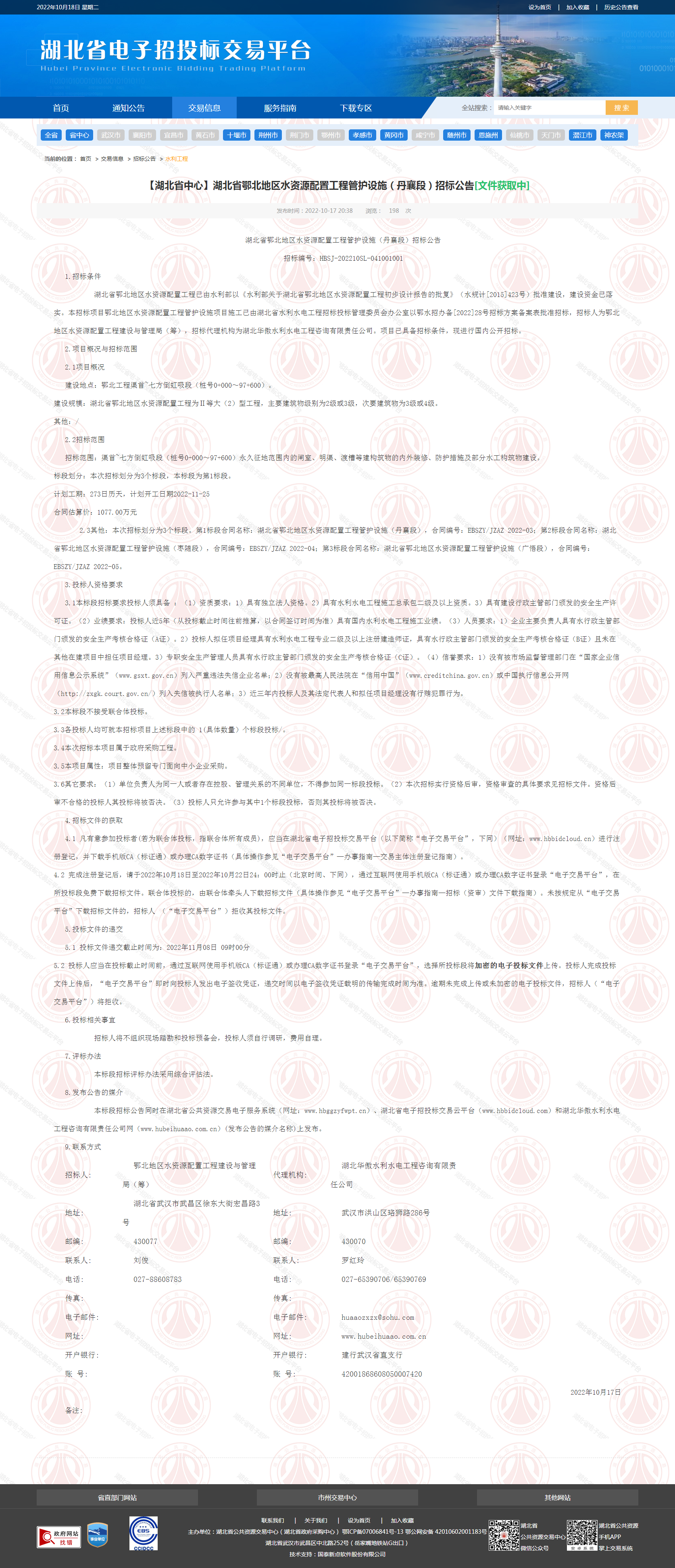 湖北省鄂北地区水资源配置工程管护设施(丹襄段)招标公告